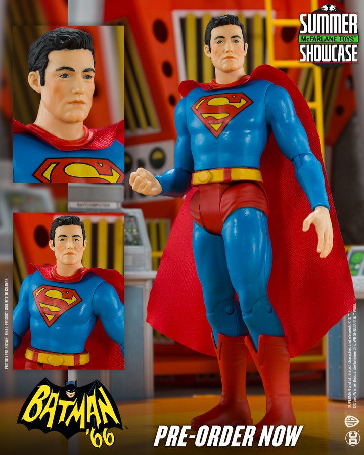 A 1966-style Superman certainly stands out, especially if anyone expected him to look like George Reeves. Rather, this face resembles a hybrid of current Batman Robert Pattinson and vintage Superman Kirk Alyn. He comes with pieces of Kryptonite, as most vintage Bat-villains would be way overmatched without it.